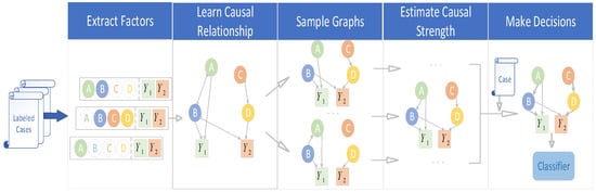 In recent years, causal inference has been widely used in the field of machine learning, and has also been effectively combined with deep learning. Liu et al., proposed a graph-based causal inference framework and applied it to the field of legal AI. They built a causal graph using a factual description of a case, and injected the causal knowledge contained in the framework into the neural network in the form of an auxiliary loss function, achieving better performance and interpretability []. The method of building a causal graph with data and then injecting causal knowledge into a neural network is the mainstream feature of causal theory in the field of artificial intelligence. Moreover, there are also ways to design encoders and decoders directly using the principles of causality. For example, in the field of legal AI, the generation of court opinions is also an important task, which is critical for subsequent judges to understand the case information and make judgments. When Wu et al., dealt with this problem, they found that, since most of the cases participating in the trial were beneficial to the plaintiff (plaintiff), the documents generated only by using this data tended to be in the plaintiff’s favor. However, this outcome is obviously unreasonable. Therefore, they used the counterfactual principles in the causal relationship to design a natural language-generation mechanism based on the attention and counterfactual principles (attentional and counterfactual-based natural language generation, AC-NLG). It consisted of an attention encoder and a counterfactual encoder, which took the plaintiff’s claim and the factual description of the case as the input and enabled the encoder to calculate a weight for perceiving the factual description and the relevant information in the claim. By using a counterfactual decoder combined with a collaborative decision prediction model, factual biases in the data could be removed and decision-discriminative opinions (both supporting and non-supporting opinions) could be produced. Good results have been achieved in both quantitative and qualitative evaluation indicators [].