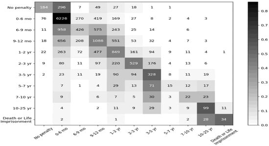 In addition, since the sentence was a continuous variable and there was also the problem of data imbalance, the sentence data was taken as discrete (refer to Zhong et al.’s previous work) and the labels were converted according to Table 3.