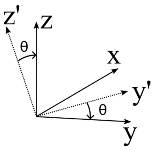 The maximum pressure depends on the combination of Young’s modulus , the Poisson ratio , and the applied force over the bodies [21]. The transformation from the xy′z′ frame to the orthogonal xyz frame is illustrated in Figure 6. The normal force is in the z′ direction. The tangential force is in the y direction. The transformation matrix is given by: