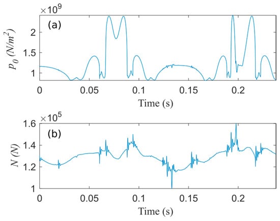 (a) Maximum pressure distribution between wheel and rail, (b) normal force.