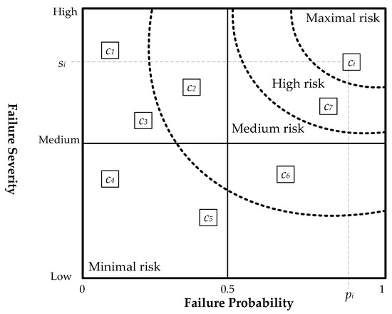 ci stands for a failure criticality determined as a function of fuzzy variables φ, ci = φ (pi,si);