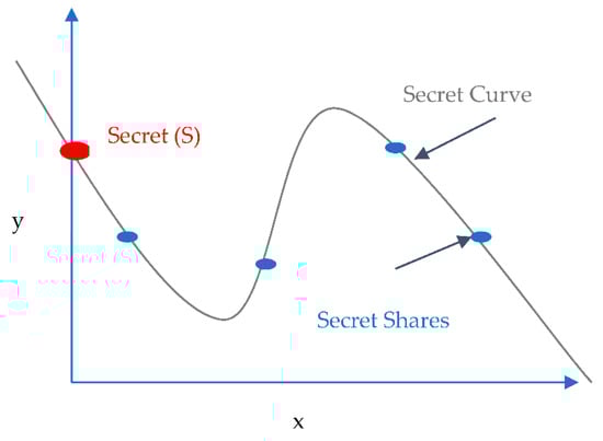 SSS is a distributed mechanism to protect a secret, most commonly to secure other encryption keys. The secret is divided into several parts known as shares. The initial secret is reassembled with the help of these individual shares. A certain amount of shares is required to uncover the secret through SSS. This is referred to as the threshold, and it denotes the minimum necessary of shares required to reveal the secret [5]. To better understand the SSS scheme, the secret is some data S that are decomposed into n distinct parts, , in such a way that the following conditions satisfy [6]: