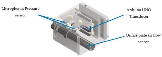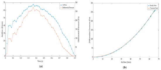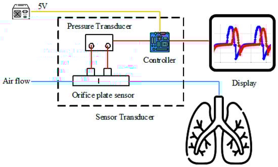 In the mathematical model of the sensor/transducer as a system, the transducer is composed by electronic devices that convert the fluid-mechanic variable of “pressure difference” to its electrical equivalent, as is the case for the variables “airflow and volume”. Furthermore, the characterization of each physical variable to be measured is necessary, with electro/mechanical devices that are able to measure the desired physical variables being monitored, which is showed in Figure 11.