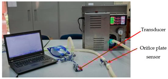 Figure 2 shows the sensor/transducer concept. It consists of an orifice plate sensor, a pressure transducer and a controller. The crossing air flow through the orifice plate produces a pressure difference related to the air flow value. Then, the pressure transducer converts the pressure signals into their electric equivalent signals which are sent to the controller for data treatment in order to determine and display the pressure, volume and flow over time using an electronic screen [10].