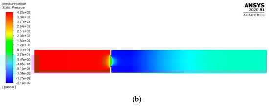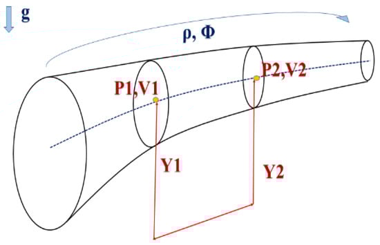 This expression can be reduced to the Bernoulli model, and with the analysis of the energy balance, Equation (2) can be obtained [13], in which ρ is the fluid flow density, and are the initial and final referential pressure through the fluid flow path, and and are the fluid flow speed.