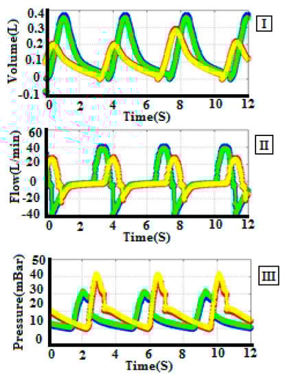 Therefore, using the last equation, the optimal control response for the pressure difference can be achieved, as well as the rotor speed and implicitly the volume, airflow and pressure. Moreover, the optimal response control can be enhanced by the specific weight matrix “W” that must be included in Equation (A5). Equation (33) has similarities with Equation (A9) but the difference is given by the adaptive matrix coefficient “ϕ”, because for this analysis the matrix depends only on the requirement control strategies while maintaining its dependence on “φ” (the geometrical and material coefficients of the designed ST).