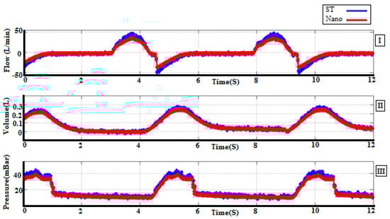 To evaluate the performance of the designed ST in comparison with its enhancement based on AAO nanostructures, experiments of the mechanical ventilator controlled by the adaptive cascade algorithm in Huancayo (3250 m over sea level) were conducted. It can be seen in Figure 39I that the curves as well as the controlled air flow (implicit) measured by the designed ST (blue colour curve) and the air flow measured by the designed ST enhanced by nanostructures (red colour curve) were obtained with a steady state error of 1.4% of the ST and 0.8% for the ST enhanced by nanostructures.