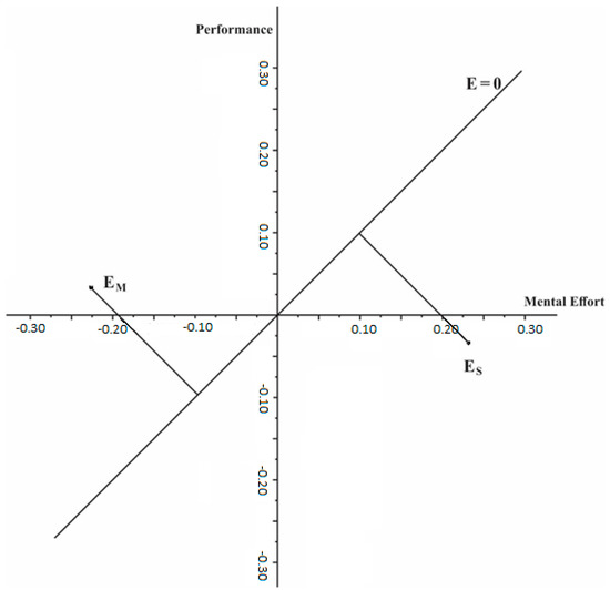 Based on the information of the standardized value of mental effort (R) and students’ achievement (P), it is possible to calculate the instructional efficiency (E) of the teaching approach as [16]. The sign of the instructional efficiency is determined graphically (Figure 1).