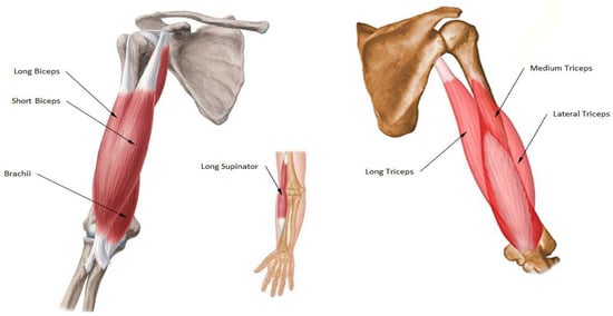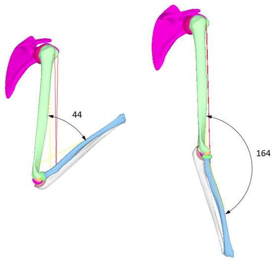 - Murray, W.M.; Delp, S.L.; Buchanan, T.S. Variation of Muscle Moment Arms with Elbow and Forearm Position. J. Biomech. 1995, 28, 513–525. [Google Scholar] [CrossRef]