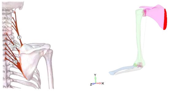 - Holzbaur, K.R.S.; Murray, W.M.; Delp, S.L. A Model of the Upper Extremity for Simulating Musculoskeletal Surgery and Analyzing Neuromuscular Control. Ann. Biomed. Eng. 2005, 33, 829–840. [Google Scholar] [CrossRef]