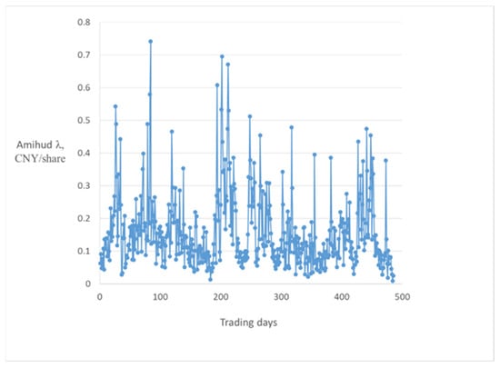 Further on, we use liquidity lambda to predict the same indexes. The intuitive meaning of our version of the Amihud measure is that it represents the average cost for the agent to make a roundtrip inside the same price bucket with one share. To provide a glimpse of the magnitude and volatility of λ, we display its daily dynamics in Figure 7.