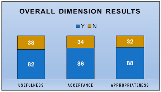 As for dichotomous responses, for the same database, Figure 2 shows an acceptability between 68.3% in usefulness and 73.3% in appropriateness.