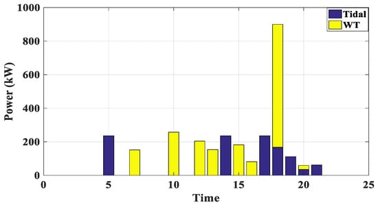 | Generation amount of storage, WT, tidal, PV, and fuel cell units. | |