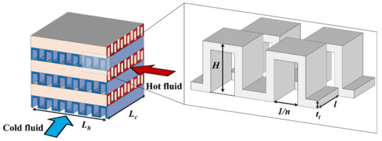 In the present study, thermal design optimization is investigated with the crossflow PFHE configuration in Figure 3, which includes many alternative layers of corrugated metal fins and plates. The following assumptions are defined for comparison with other literature before the calculation of the heat exchanger: