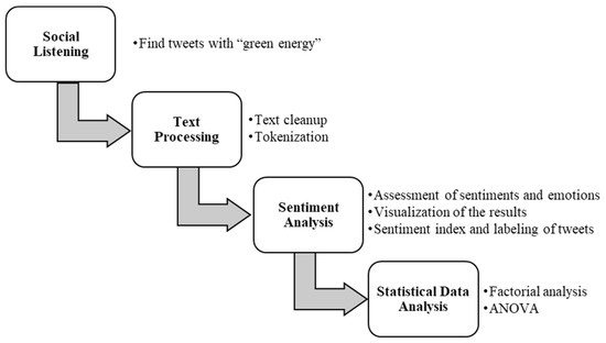 In this research, we carried out a social listening analysis on green energy before and after 24 February 2022, the day when Russia invaded Ukraine. The methodology behind the analysis of this search is summarized in Figure 1.