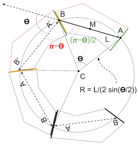 Each joint between polygons and will place the axes of the polygons at the same angle, , since these polygons do not change shape. Define to be positive if we move anti-clockwise from to and negative if we move clockwise. If , the joints will be collinear.