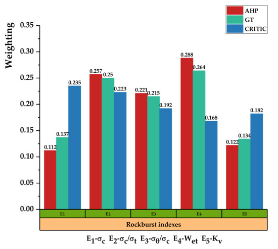 - Wang, J.; Huang, M.; Guo, J. Rock Burst Evaluation Using the CRITIC Algorithm-Based Cloud Model. Front. Phys. 2021, 8, 593701. [Google Scholar] [CrossRef]