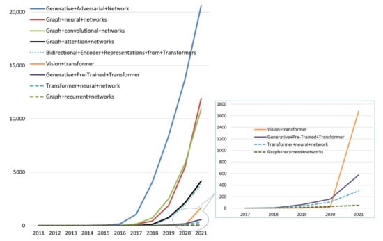 The development of the RNN idea turned into the appearance of LSTM [79] and transformer models, such as BERT (bidirectional encoder representations from transformers) [92], ELMO [93], GPT (generative pre-trained transformer) and generative adversarial networks [94,95,96,97]. These models have recently become widely used, since they effectively solve the issues of natural language processing.