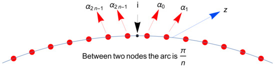 We can describe z as . Taking into account the previous description of the nodal system, we have and (see Figure 1). These choices make the reinterpretation of the previous expressions possible. Indeed, it is easy to obtain when n is even and newly when n is odd.