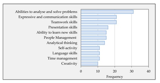 The share of job offers that prioritize hard skills (professional knowledge and skills) among job applicants is significantly decreasing. Employers are gradually replacing the requirements for hard skills with requirements for soft skills, such as the ability to analyse and solve problems (logical thinking), good presentation and communication skills, the ability to work as a team, and others. In most cases, these skills are irreplaceable with advanced automation and informatization. Soft skills cannot be taught as hard skills. They can be improved and partially trained. In the past, they were only complementary, but nowadays the situation on the labour market has changed. The lack of suitable employees has made employers realize that they can teach the necessary hard skills, but some of the required soft skills (e.g., responsible attitude to work, ability to think analytically, etc.) are much more difficult to teach [13,46].