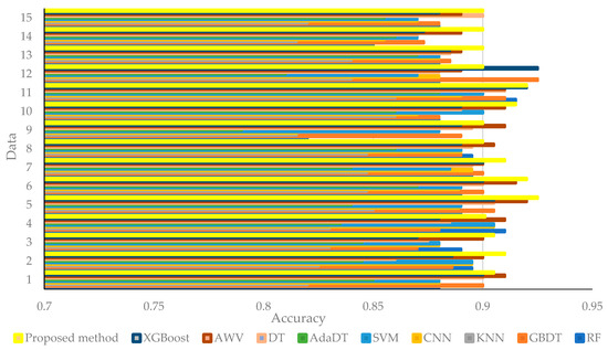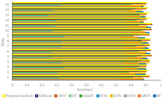 In this experiment, KNN, SVM, GBDT, XGBoost, CNN, and others were applied as conventional models [24,25,32,33,34,35].