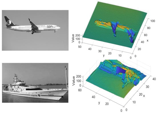 Previous studies revealed that gradient information at different orders characterize different structural features of natural scenes. The first-order gradient information is related to the slope and elasticity of a surface, while the second-order gradient delivers the curvature-related geometric properties. Figure 1 depicts two images and their corresponding landscapes plotted as surfaces; one can see that these landscapes contain a variety of local shapes, such as cliffs, ridges, summits, valleys, and basins. Inspired by the above results, we propose a new FR method that exploits the SOIGO. The second-order gradient is obtained based on the first-order gradient information defined in Equation (2),