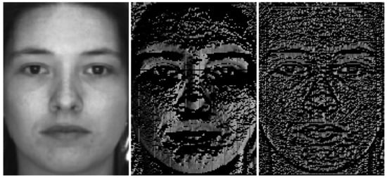 Original face image and its gradient orientations of the first and second orders, respectively.