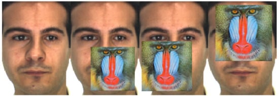Original face image and its occluded images with different occlusion percentages; from the second to the last, the percentage is 30%, 40%, and 50%, respectively.