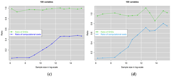 Ref. [15] showed that when the sample size is in the order of hundreds of thousands, MMHC’s implementation in the R package bnlearn requires more than a day with continuous data, even with 50 variables. On the contrary, PCHC is a computationally efficient and scalable BN learning algorithm [15]. With modern technology and vast data generation, the computational cost is a considerable parameter. Every novel algorithm must be computationally efficient and scalable to large sample sizes. Seen from the green economy point of view, this cost also has an economic and environmental impact; a faster algorithm will produce results in a more timely manner, facilitating faster decision making, consuming less energy and hence reducing its carbon footprint.