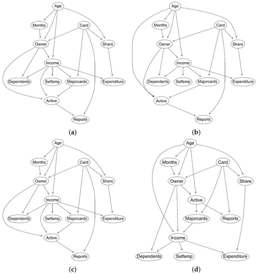 - Lam, W.; Bacchus, F. Learning Bayesian belief networks: An approach based on the MDL principle. Comput. Intell. 1994, 10, 269–293. [Google Scholar] [CrossRef] [Green Version]