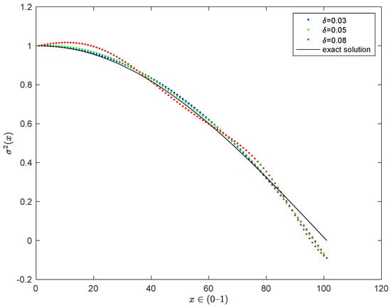 Numerical solution of unknown function for Example 1 with noisy input data.