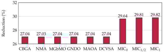 Reduction percentage for each solution methodology with respect to the benchmark case in the IEEE 33-bus network.