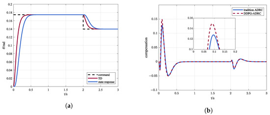 (a) Control instruction and state response via traditional ADRC and (b) comparison of compensation amount between traditional ADRC and DDPG-ADRC.