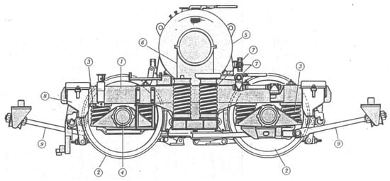 - Sauvage, G. Determining the Characteristics of Helican Springs: A simplification for Application in Railway Suspensions. Veh. Syst. Dyn. Int. J. Veh. Mech. Mobil. 1984, 13, 43–59. [Google Scholar]