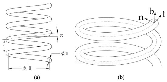 - Yildirim, V. Axial Static Load Dependence Free Vibration Analysis of Helical Springs Based on the Theory of Spatially Curved Barx. Lat. Am. J. Solids Struct. 2016, 13, 2852–2875. [Google Scholar] [CrossRef] [Green Version]