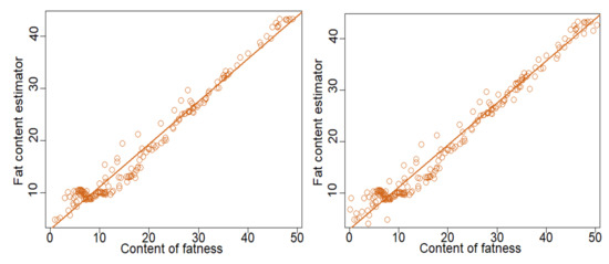 The following Figure 7 compares the content of fatness and its estimation by the model in both cases: Gaussian and Logistic cases.