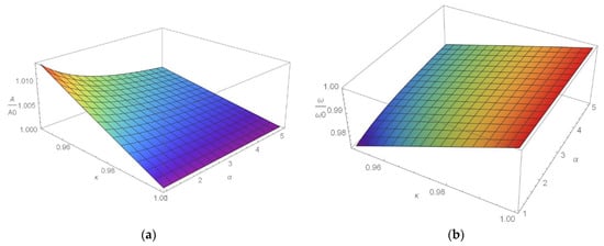 (a) A/A0-α-κ and (b) ω/ω0-α-κ diagrams.