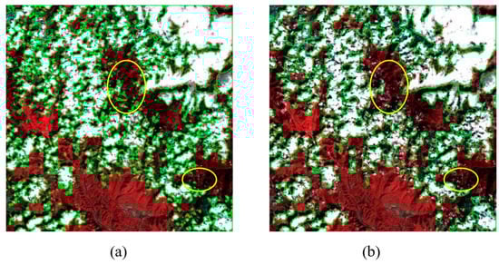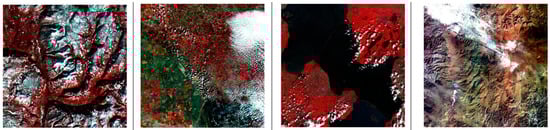 The experiment data are multispectral data from the GF-1 satellite [31], containing three bands of visible RGB and near-infrared, with a variety of scenes of snowy mountains, cities, water, vegetation, etc. An example is shown in Figure 3.