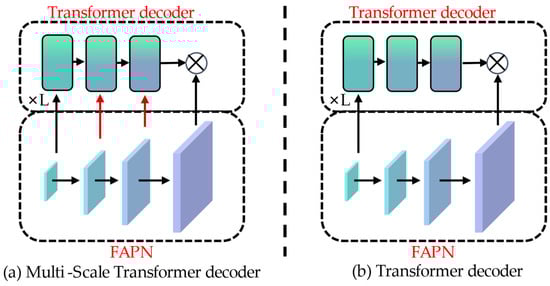 Decoder structure comparison. (a) Multi-Scale Transforemr decoder. (b) Transformer decoder.