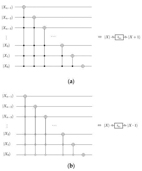 The first step, neighborhood , is obtained through address shift operation circuits, the designed circuit is shown in Figure 13, and label numbers  are saved in the ancilla qubits.
