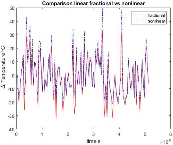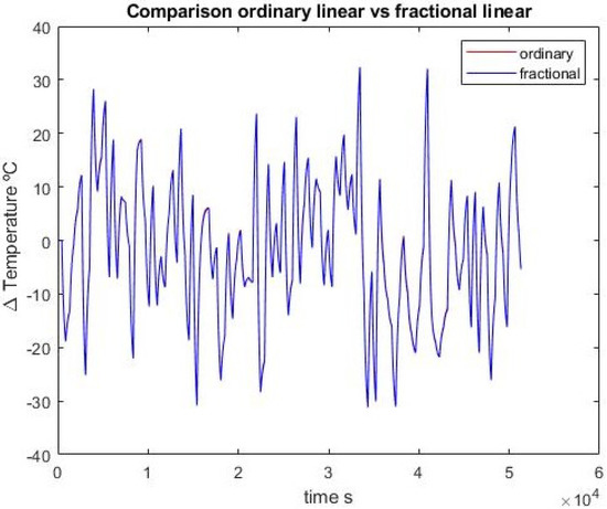 Randomly generated data also confirmed this trend when they were used to simulate outputs based on a fractional transfer function. A relatively low-order integer transfer function obtained using classic standard methods was very effective in fitting the data for low and medium frequencies, the Oustaloup’s approximation giving a big transfer function even setting the method approximation order to the minimum and Matsuda’s one presenting problems of instability.