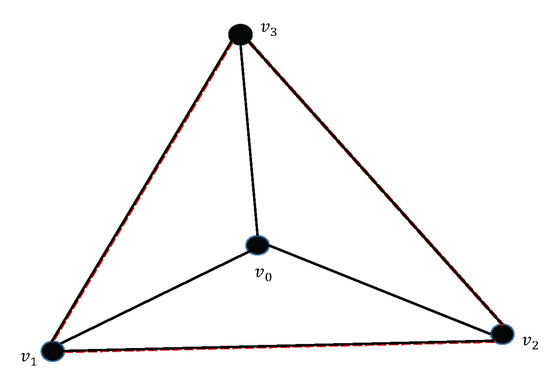 Let and be two simplexes of complex with no intersection; then, the join of them is with the vertex scheme being . The star of is the collection of simplexes of , denoted . See Figure 1; consider a complex consisting of all vertices , and all segments and all triangles ; the star of 0-simplex , consists of all simplexes of except the red dotted segments and its faces.