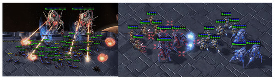 - Samvelyan, M.; Rashid, T.; De Witt, C.S.; Farquhar, G.; Nardelli, N.; Rudner, T.G.; Hung, C.M.; Torr, P.H.; Foerster, J.; Whiteson, S. The starcraft multi-agent challenge. arXiv 2019, arXiv:1902.04043. [Google Scholar]