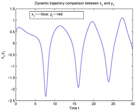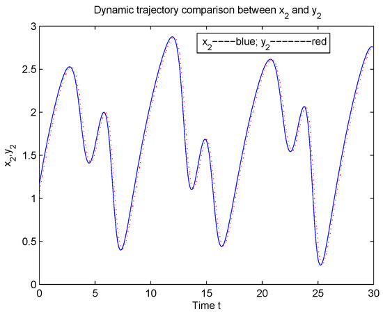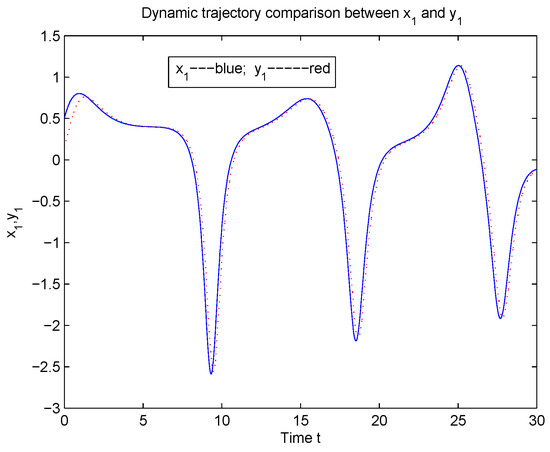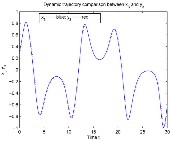 According to Theorem 1, System (5) is global Mittag-Leffler synchronization with System (2) (see Figure 1, Figure 2, Figure 3, Figure 4, Figure 5, Figure 6 and Figure 7).