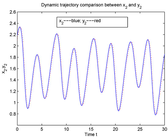 Figure 8, Figure 9, Figure 10 and Figure 11 illustrate that the synchronization speeds of the financial systems in Example 2 are faster than those in Example 1, for the data are different from those of Example 1. In fact, the corresponding data in Example 1 made financial systems chaotic (see [1,3,4,5,10]).