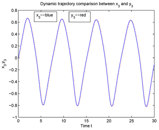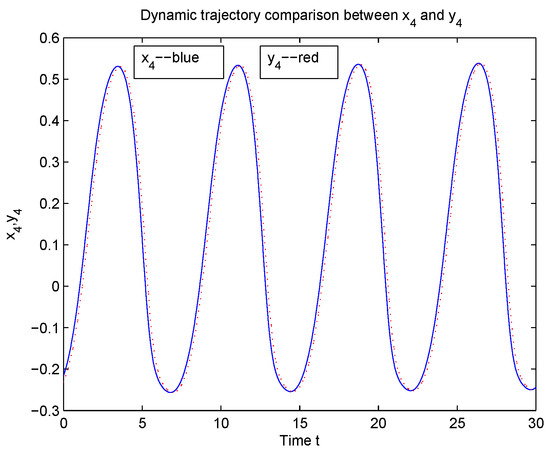 According to Theorem 1, System (5) is in global Mittag-Leffler synchronization with System (2) (see Figure 8, Figure 9, Figure 10 and Figure 11).