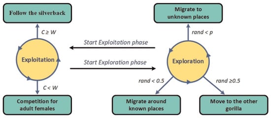 AGTO is a novel metaheuristic approach based on the group behaviours of gorillas. Five distinct operators illustrated in Figure 1 are employed in the AGTO method regarding exploitation and exploration operations.