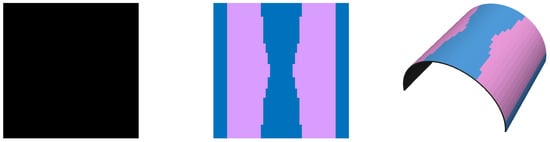 Previous works [,,] have shown that the implementation of topological optimisation on numerical models based on the Finite Element Method (FEM) allows, simultaneously, an optimizing host structure and a polarisation profile of the electrodes. These works were carried out on different geometries in the form of flat plates and one-dimensional beams. A similar work, applied in this case to curved shell-type structures, was carried out by Donoso et al. [], but limited to the design of the polarisation profile.