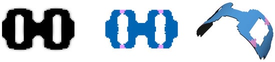 where and are tuning parameters that define the threshold and the sharpness of the function, respectively. The filtered densities of Equation (8) are projected to 0 or 1 depending if these value are smaller or bigger than the threshold . The filtered densities are expressed as []: