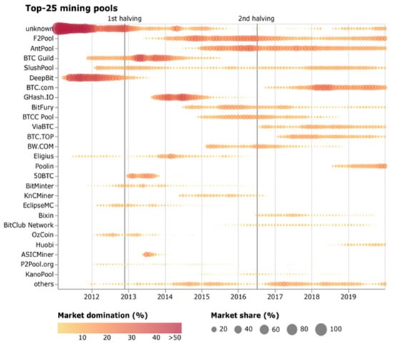 - Natkamon, T.; Soulié, N.; Isenberg, P. Visual analytics of bitcoin mining pool evolution: On the road toward stability? In Proceedings of the 11th IFIP International Conference on New Technologies, Mobility & Security, Paris, France, 19–21 April 2021; pp. 1–5. [Google Scholar]